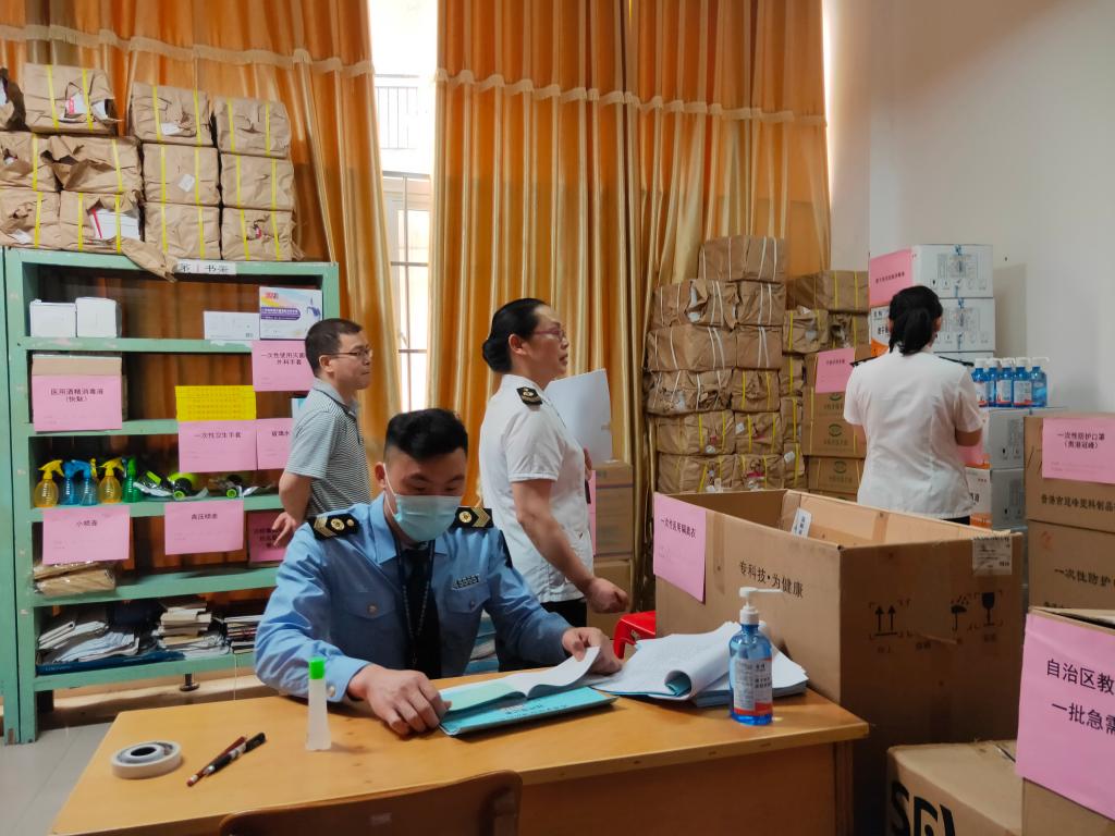 2021年4月1日,宜州区卫健局一行3人到学校BWIN必赢检查防疫物资,检查组通过查阅防控物资保障制度、台账资料、实地查看等方式,全面了解防控物资仓储管理、出入库建账、领用发放登记、库存管理等方面情况,检查组认为BWIN必赢常态化疫情防控物资管理较为规范,安排有专人管理,台账明细清晰,并就完善相关制度提出建议。